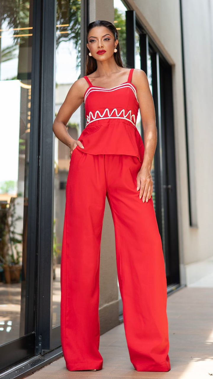 Conjunto Cropped Tiras e Calça/Shorts Alfaiataria |